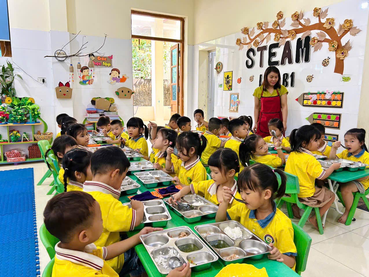 Hoạt động ăn trưa ở trường mầm non không chỉ nuôi dưỡng thể chất, mà còn nuôi dưỡng thói quen, ý thức và nhân cách – góp phần quan trọng trong quá trình hình thành nền tảng sống tích cực cho trẻ.